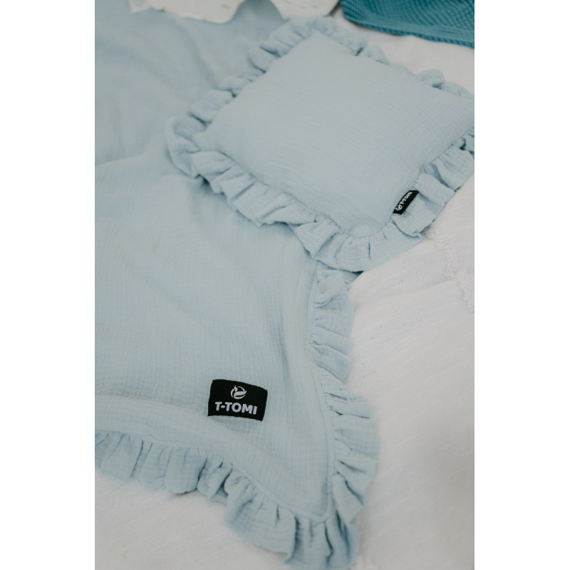 T-TOMI Muslin blanket with ruffles Blue