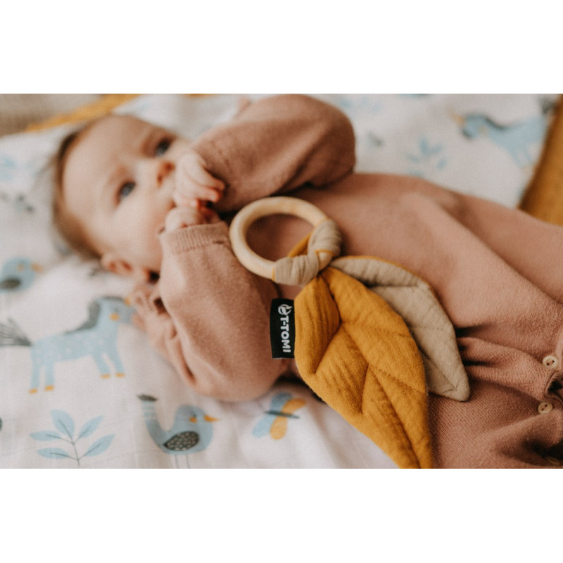 By connection of two materials wood and cloth we made T-TOMI Wooden teether. Cute, but functional toys, which your baby will love. They will be useful during non popular teeth growing time. Wood it´s a great substitute of plastic teethers. Playing with the wooden circle is great for fine motor skills. Modern design and soft velvet are made just for cuddles.